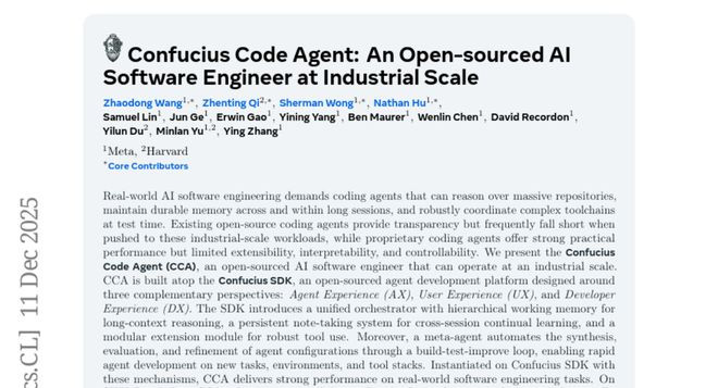 这项由Meta公司和哈佛大学相关开展的重磅权术发表于2024年12月,权术团队由来自Meta的王兆东、黄燮婷、黄善文、胡志远等权术员,以及哈佛大学的皆振庭、杜艺伦、于敏岚等学者构成。该权术的效果被定名为"ConfuciusCodeAgent",相关论文可通过编号arXiv:2512.10398查询获取。